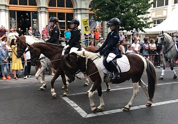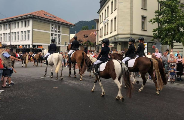 Auch dieses Jahr waren 11 Pferde und Reiter vom Ponyhof Sturmwind beim 1. August Umzug mitten durch Interlaken dabei. Mit insgesamt 20 Teilnehmenden, zu Pferd oder auch führend, repräsentierten wir den Kavallerie Reitverein Interlaken.