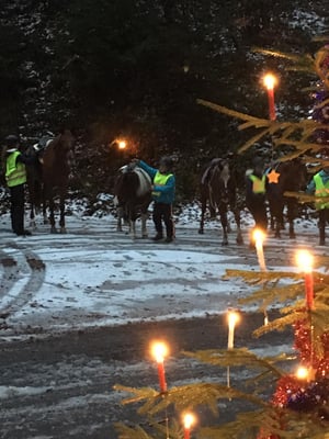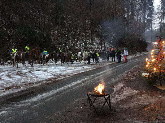 Mit 17 Kinder und Jugendlichen zu Pferd und einigen Eltern zu Fuss machten wir uns am vergangenem Sonntag dem 16.12.2018 auf den Weg in den Wald um traditionell den lieben Samichlaus zu besuchen. Als wir eintrafen, wurden wir mit leckerem Punch, HotDogs und stimmungsvoller Musik begrüsst. Nach einem kurzen Rückblick vom ganzen Jahr, mutigen Kindern die vortraten und ein Färsli aufsagten und verteilen der vielen Samichlausensäckli machten wir uns wieder auf den Nachhauseweg.