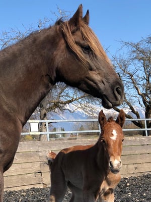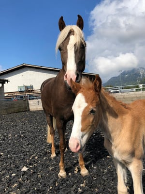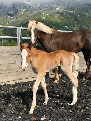 Unsere hübsche Miss Umina, Tochter von Unita vom Sturmwind und FS Mr. Magic, hat am 28.04.2019 um 19.28 Uhr unseren Ponyhof bereichert. Zur starken mentalen Unterstützung, stand Familie Gafner Unita zur Seite. Céline, eilend auf dem Nachhauseweg von der BEA in Bern, wo Ihre Tochter Léanne bei der Gala-Show mitritt. Trotzdem ging alles gut und Miss Umina geht es prächtig!